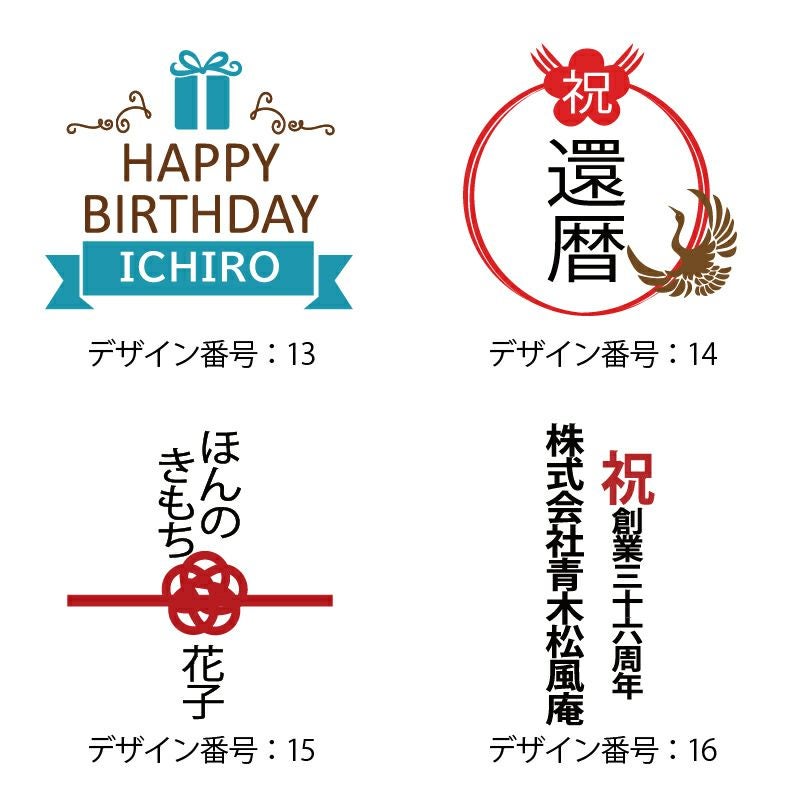 デザイン番号:1~17は、デザイン内の文言を変更可能です。選択肢の「文言の変更」に希望の内容をご入力ください。