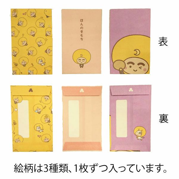 つきろーくん柄のオリジナルポチ袋。絵柄は3種類、各1枚ずつ入った3枚セットです。