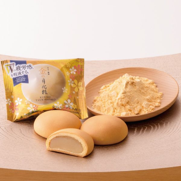 金のユーグレナを練り込んだ皮で北海道産いんげん豆を使い自家製餡したみるく餡を包みました。金の月化粧1個に機能性関与成分ユーグレナグラシリスEOD-1株由来パラミロン(β-1,3-グルカンとして)350mg(1日摂取目安量)を配合しました。