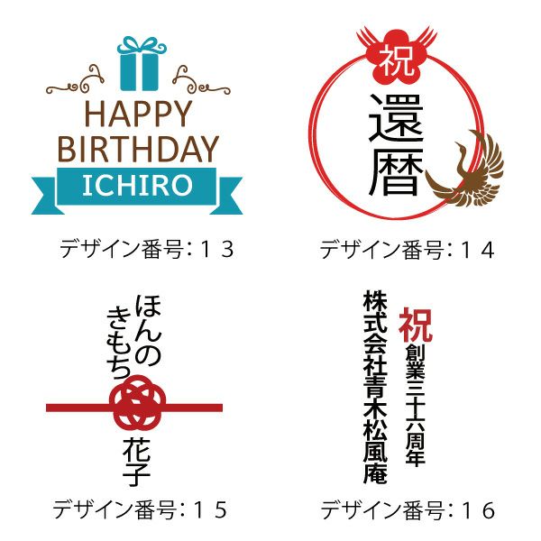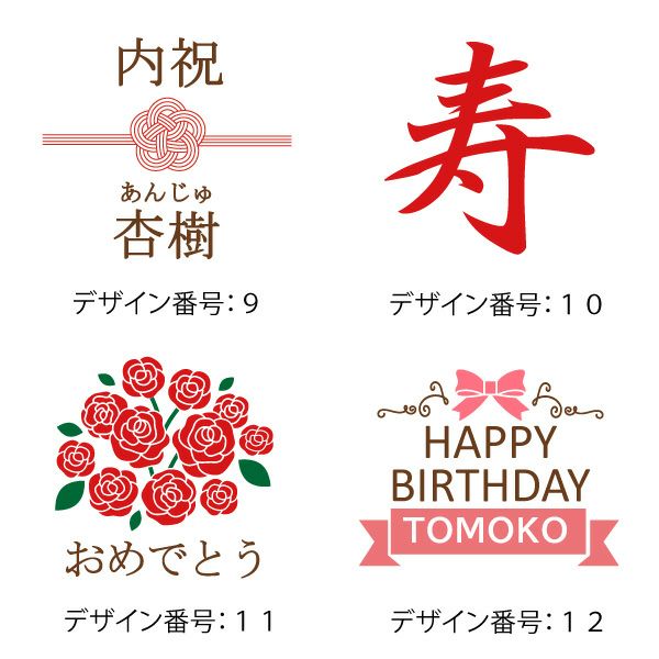 デザイン番号:A~Oにつきましては、文字色やメッセージの変更はお承りできません。