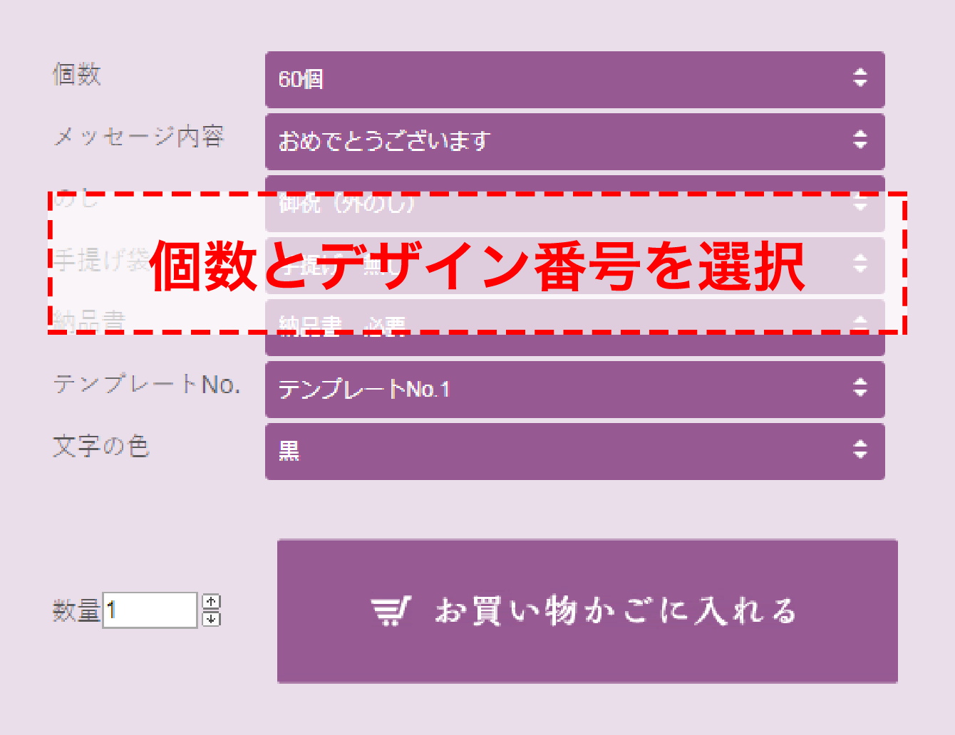 - ・お買い物かごに入れる際にデザイン番号を項目選択肢より選択して下さい。